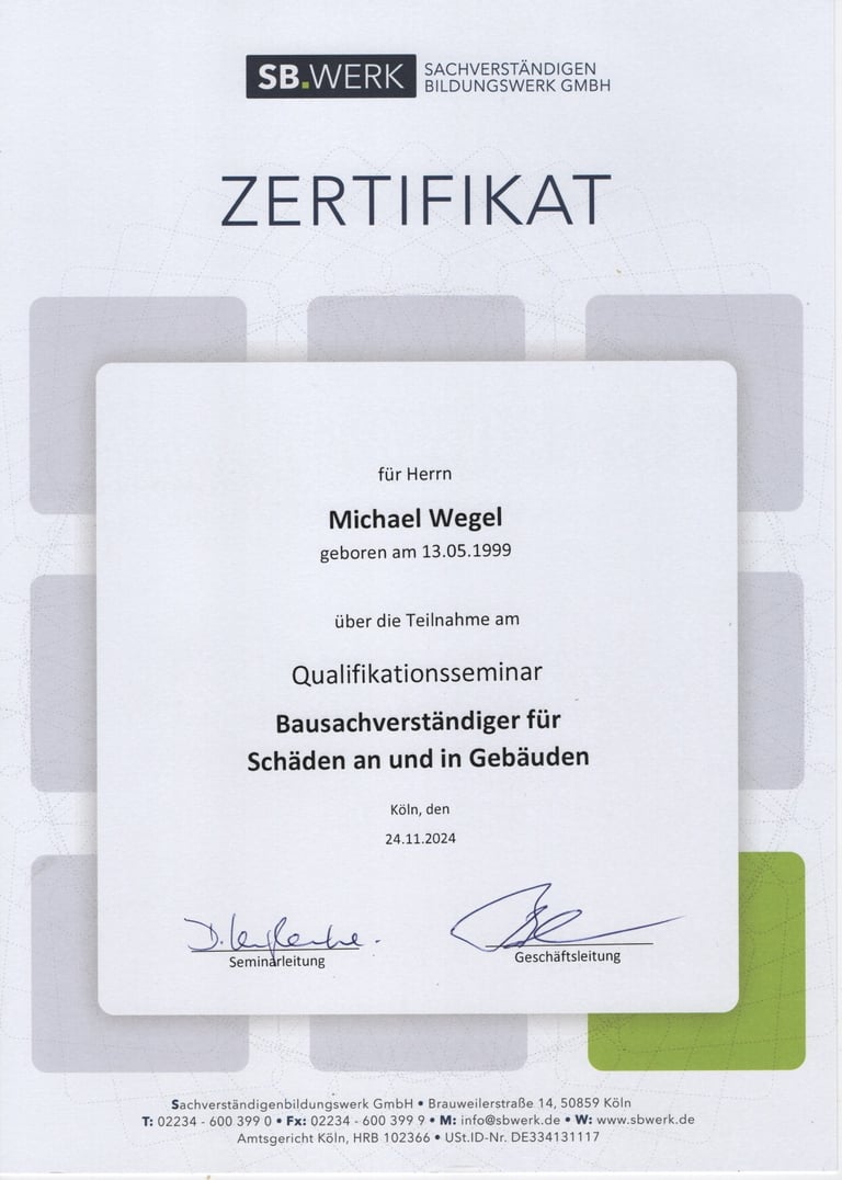 Als unabhängiger Bausachverständiger unterstütze ich Privatkunden, Unternehmen und Versicherungen mit neutralen und präzisen Gutachten. Meine Ausbildung im Bauwesen und Weiterbildung zum staatlich geprüften Bautechniker legten den Grundstein für meine berufliche Laufbahn, die ich in verschiedenen Bauunternehmen und Gutachterbüros vertiefen konnte. Durch kontinuierliche Fortbildungen und Zertifizierungen habe ich meine Expertise in Immobilienbewertungen, Baumängeln sowie Feuchtigkeits- und Schimmelschäden kontinuierlich erweitert. Mein Ziel ist es, Ihnen klare und verlässliche Entscheidungsgrundlagen zu liefern.